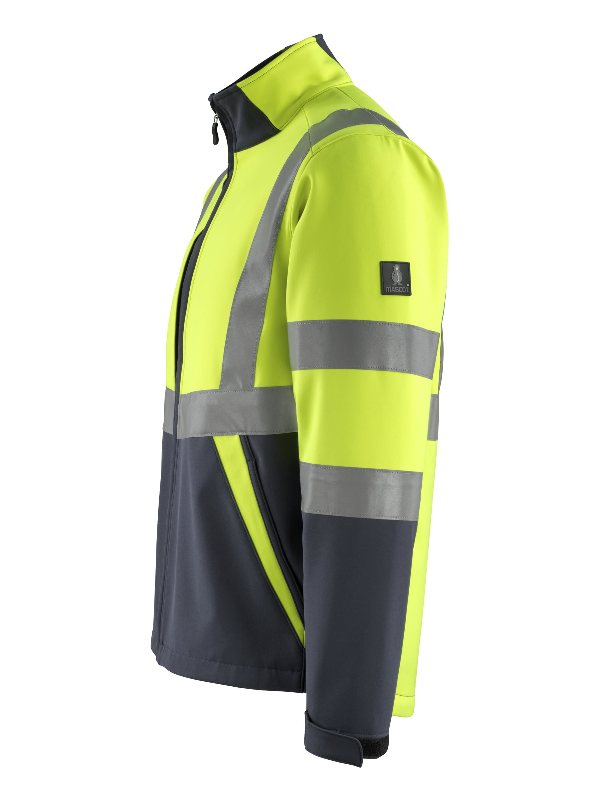 This Mascot workwear Hi Vis 2 Tone softshell Jacket has fluorescent vertical and horizontal reflective tapes. The dark contrast is placed in the jacket where its most likely to get dirt on it. It is breathable, high collar and fleece lined inner lining gives you extreme comfort to the user. It has front pockets and chest pockets with zip. It is an incredibly lightweight and hard wearing hi vis jacket. Available in sizes s-4xl